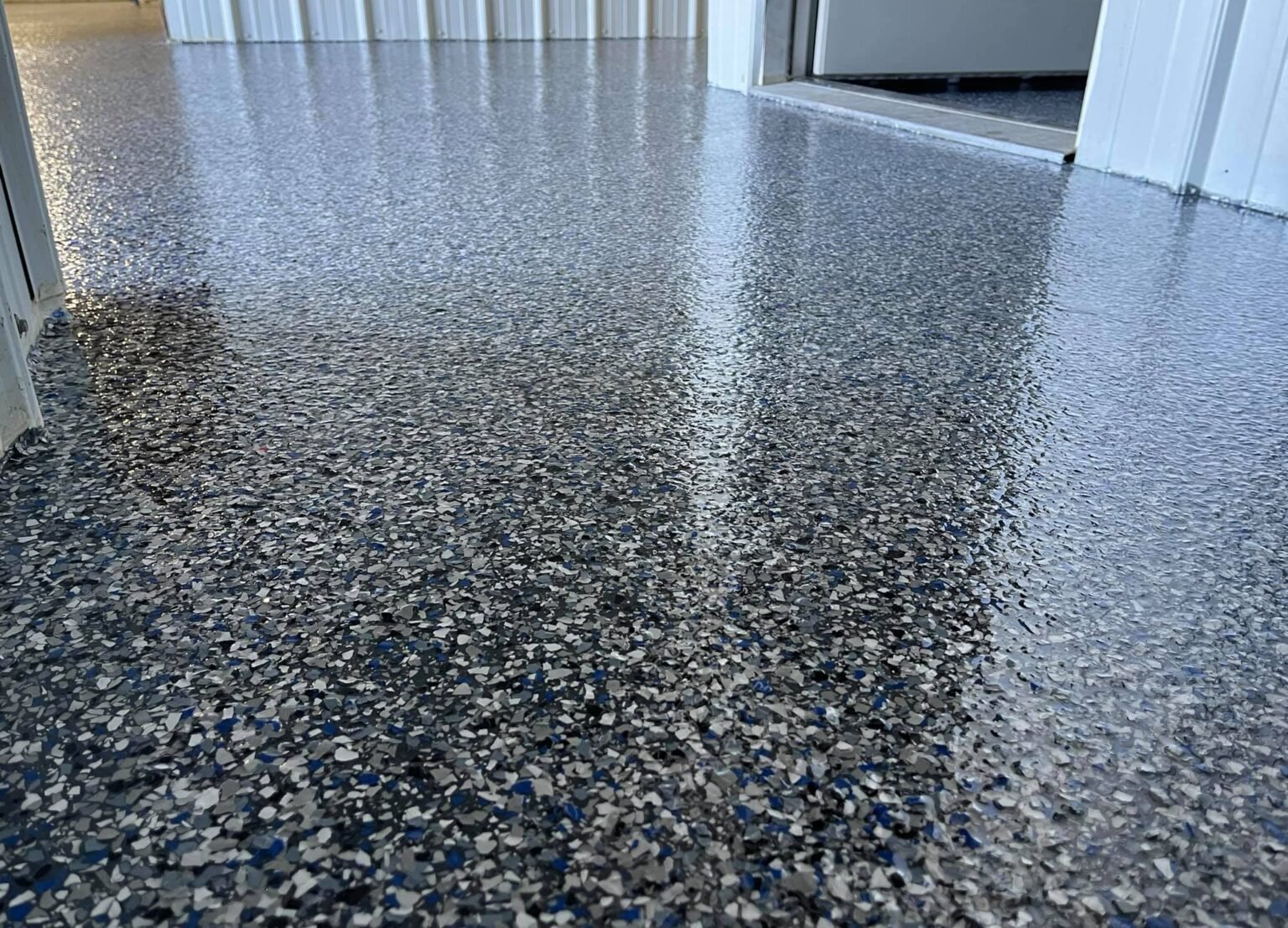 Finally, we seal the floor with a durable clear topcoat that provides UV resistance, chemical protection, and enhanced longevity. Choose from a glossy or matte finish for the perfect final touch.